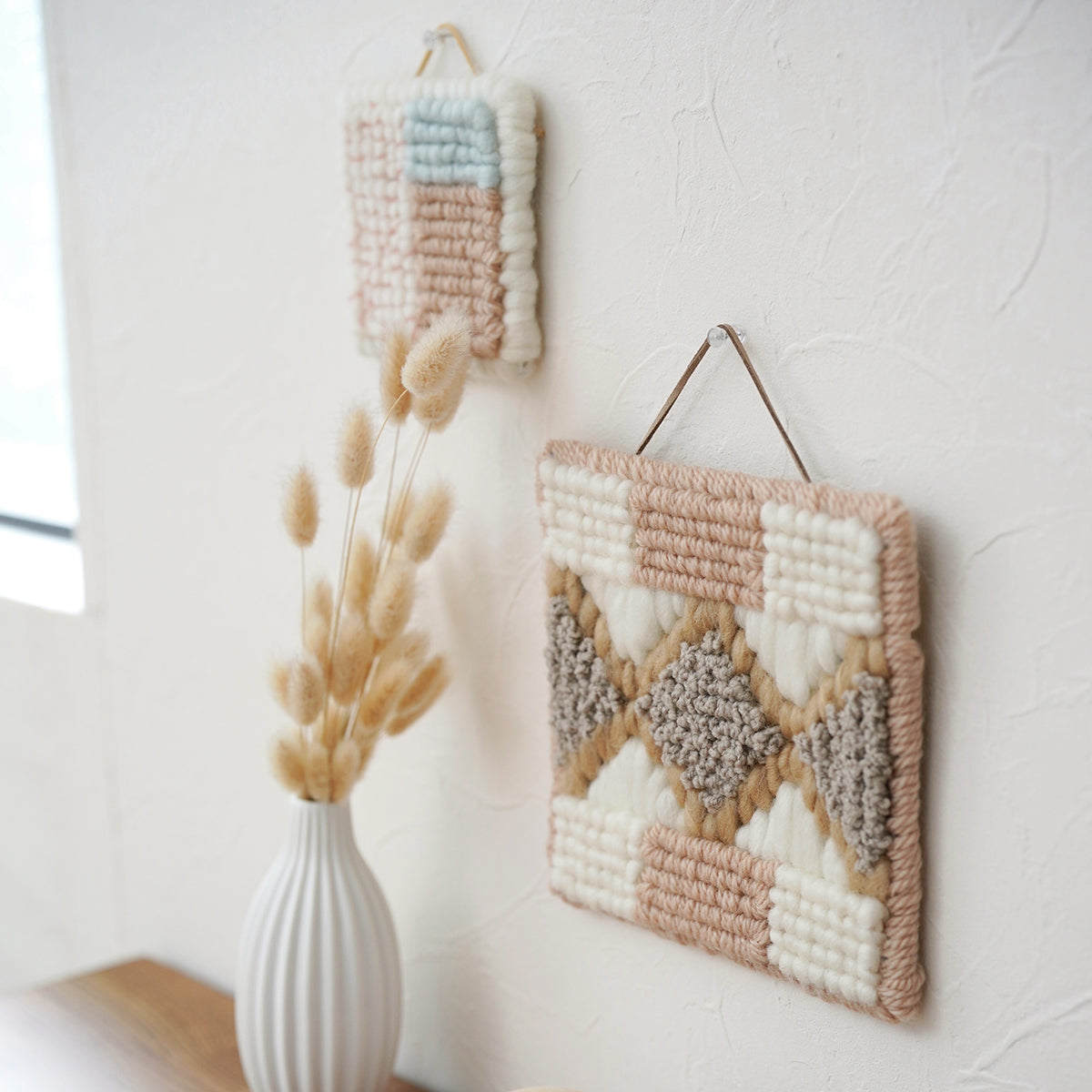 毛糸の質感を楽しみながら、インテリアを素敵にしてくれるウィービングとロッカーフッキングも冬のインテリアアイテムとしておすすめです。